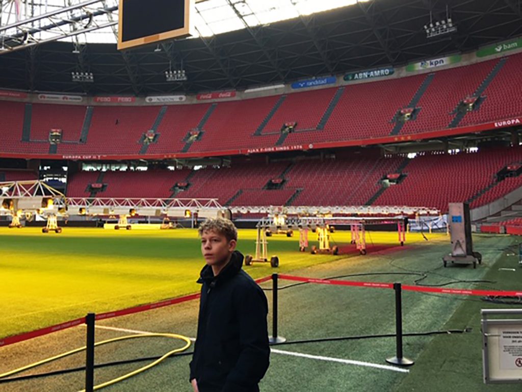 Sondre på plass på mektige Johan Cruyff Arena, Ajax’ hjemmebane. Foto: Privat